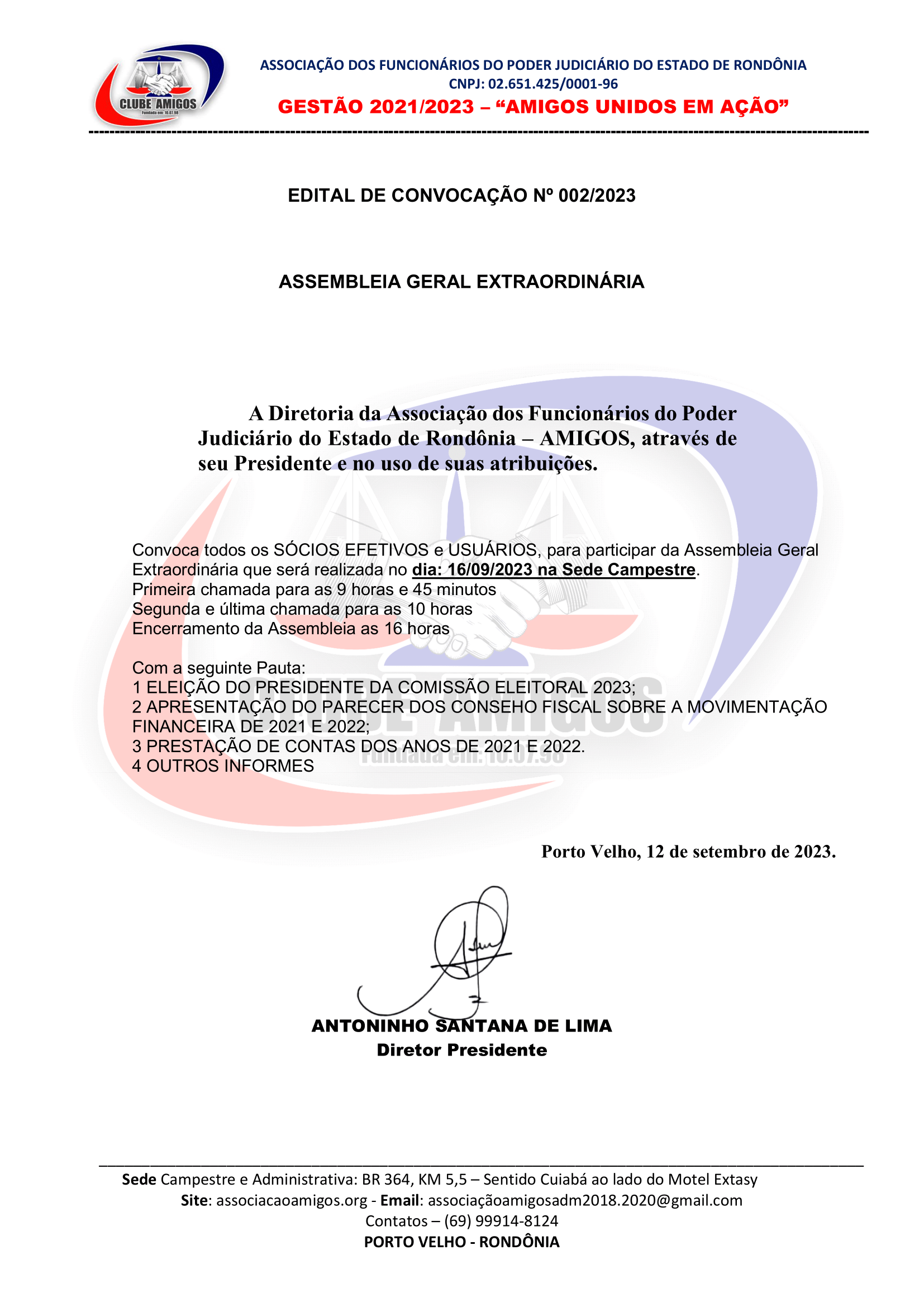• Assembleia Geral Extraordinária neste sábado!